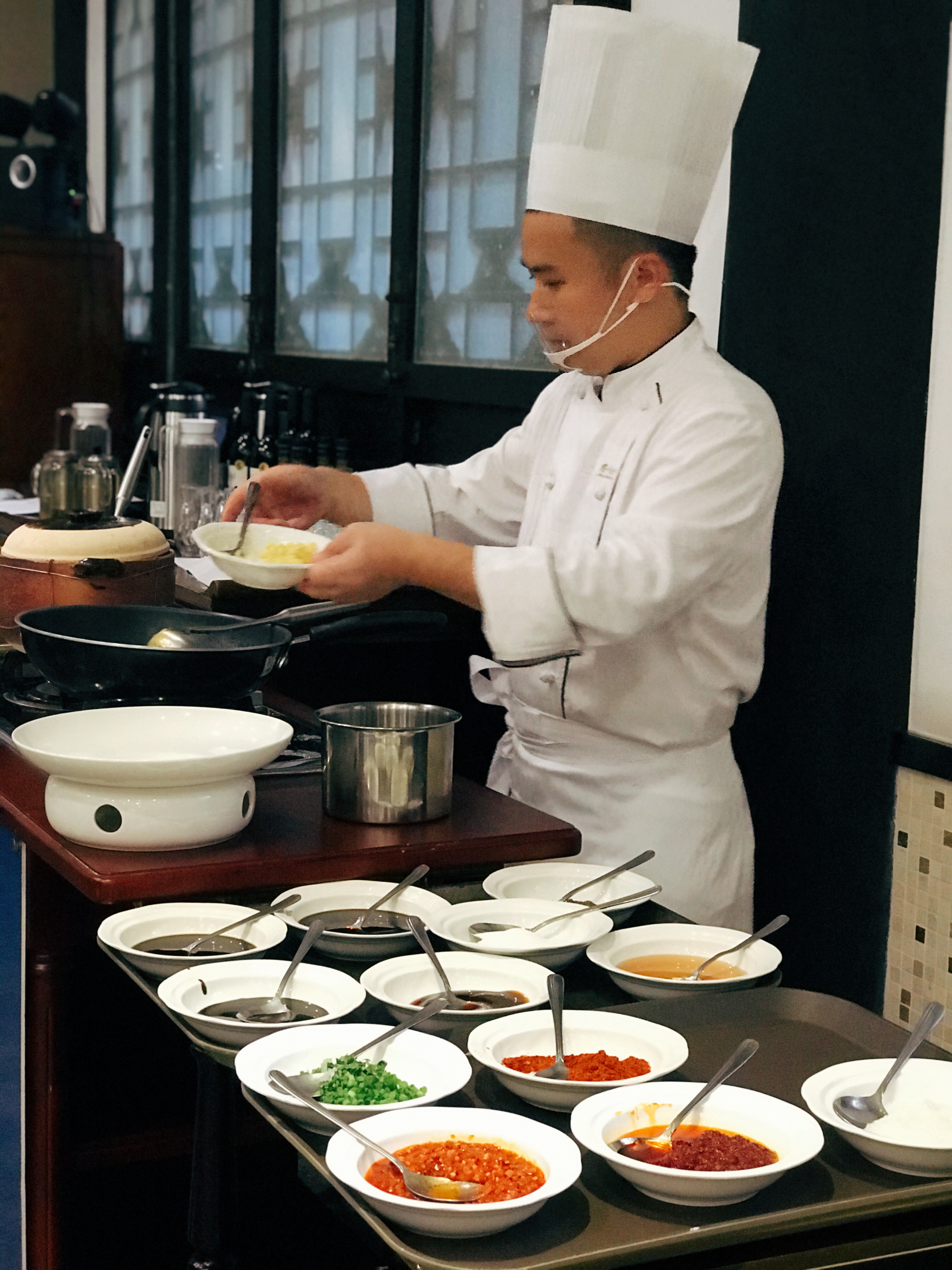 小龍坎控股集團陳剛副總經(jīng)理對本次眉山行的來賓以及“花樣美食團”的到來表示熱烈歡迎,廠區(qū)內(nèi)舉行了“花樣美食”宴,媒體與美食評審團對小龍坎門店菜品和漫味龍廚鍋底進(jìn)行了品鑒。