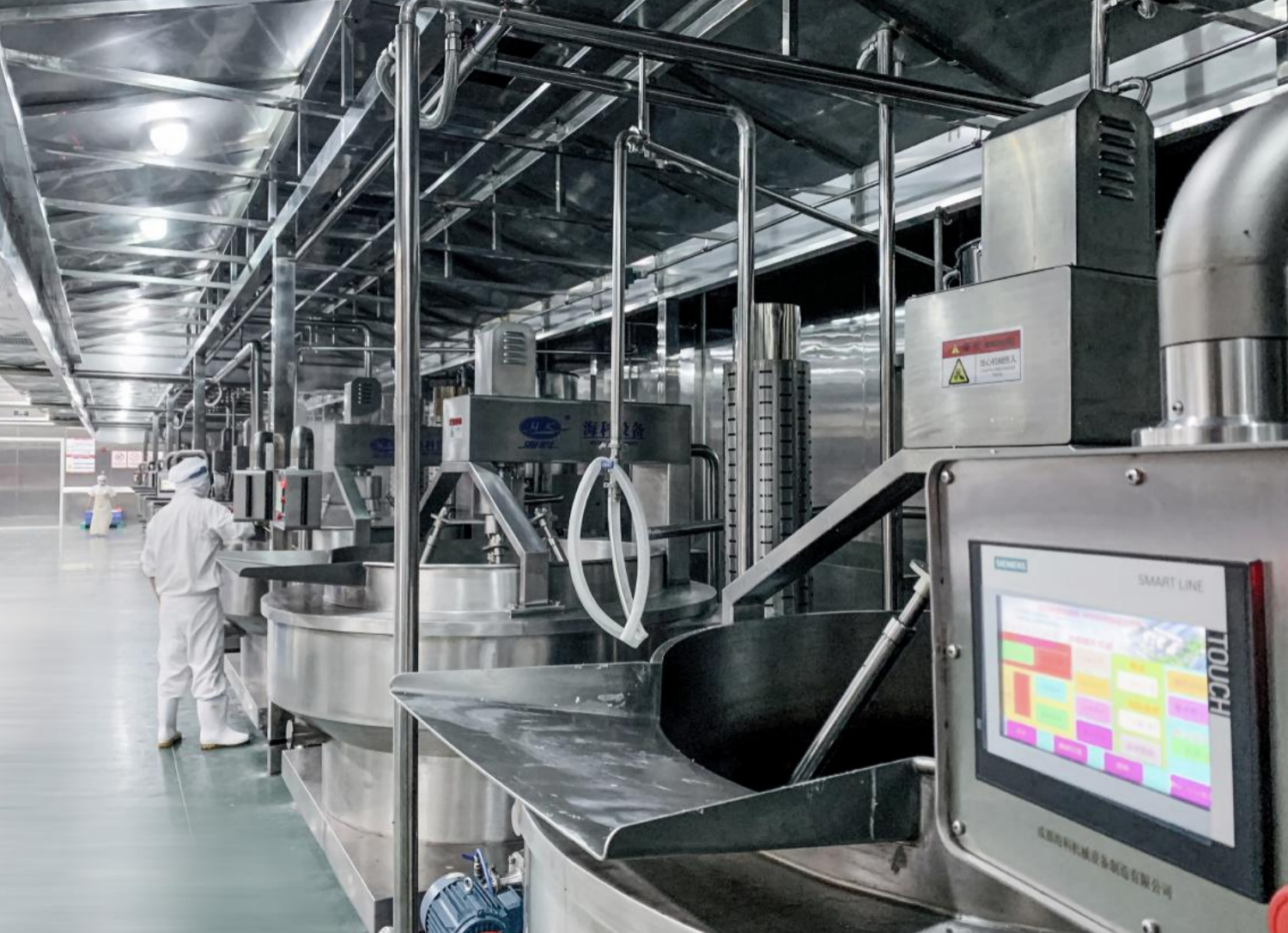 與此同時(shí),四川漫味龍廚生物科技有限公司還向社會(huì)提供餐飲定制、貼牌加工、委托加工服務(wù),期間已與聯(lián)合利華、熊貓大鮮、朝天香等知名品牌合作,為其提供定制化的零售端產(chǎn)品研發(fā)、生產(chǎn)服務(wù)。為提升生產(chǎn)技術(shù)和產(chǎn)品工藝,公司于2019年耗資3億在四川眉山建成數(shù)字智能化生產(chǎn)工廠,正式搭建“小龍坎超級(jí)工廠”。公司秉承“用科技承襲傳統(tǒng),用創(chuàng)新秉承匠心”的宗旨,將傳統(tǒng)川調(diào)行業(yè)由“制造”向“智造”轉(zhuǎn)變。工廠全自動(dòng)化運(yùn)營,整體對接ERP、MES、WMS等軟件系統(tǒng)把高度的數(shù)據(jù)集成技術(shù)運(yùn)用到采購、制作、庫存等生產(chǎn)鏈路中,實(shí)現(xiàn)數(shù)字化管理、智能化生產(chǎn)、科技化工藝,是西南火鍋底料生產(chǎn)行業(yè)中采用反應(yīng)釜加機(jī)器人相結(jié)合炒制方法的企業(yè),無需人工感官判斷,智能精準(zhǔn)控制溫度,產(chǎn)品風(fēng)味更加穩(wěn)定。