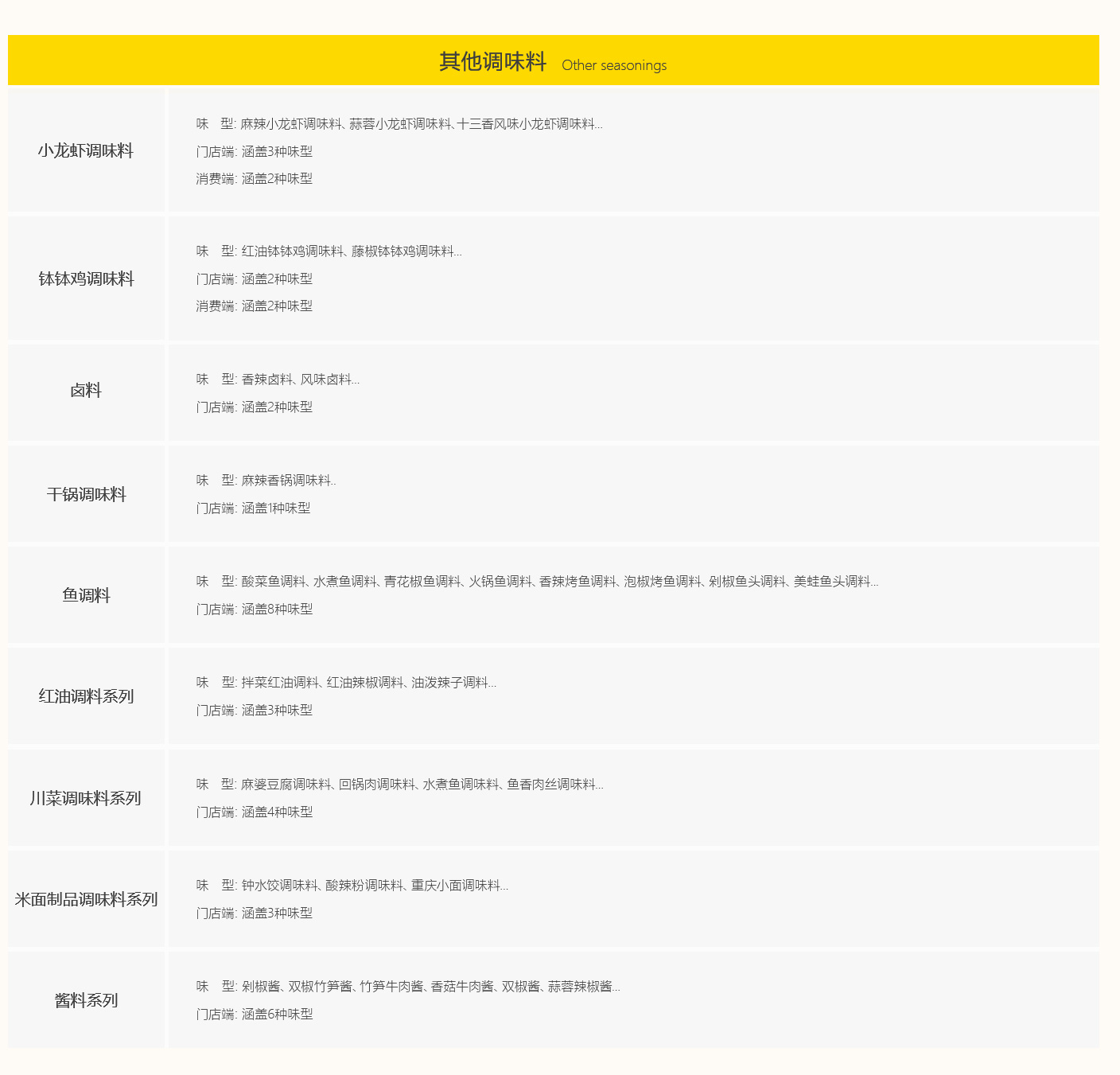 定制化業(yè)務(wù)范疇:精確把握客戶需求,為其提供產(chǎn)品服務(wù),從研發(fā)、技術(shù)設(shè)計(jì)、試制生產(chǎn)、后期維護(hù)等全方面多角度服務(wù)。為大型連鎖餐飲類、餐飲食品快消類、食品工業(yè)類等客戶提供專屬個(gè)性化需求定制方案,包括產(chǎn)品口味定制開(kāi)發(fā)、產(chǎn)品配方定向化研發(fā)、產(chǎn)品精細(xì)化應(yīng)用、產(chǎn)品標(biāo)準(zhǔn)化出品、菜品升級(jí)、餐飲專業(yè)咨詢服務(wù)。